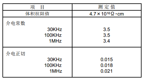 根据JIS K6911(热硬化性塑料的一般试验法) 所测得的Seal-glo NE7200HD 硬化物的电气特性数据记录如下