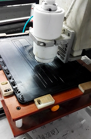 2、 将胶水在 120℃下恒温加热熔融,用点胶机施胶于需要被粘接的部位,2 分钟内完成贴合。